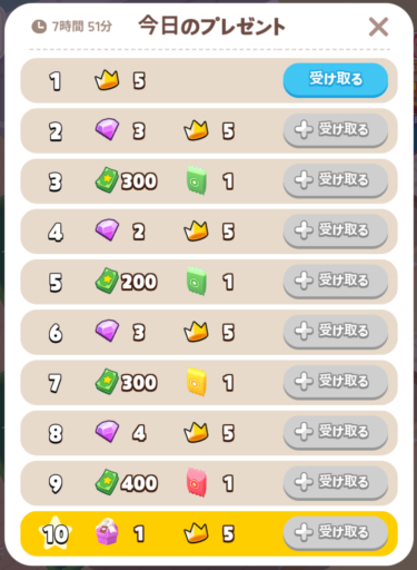 デイリーミッションは、クラウンポイントと宝石がもらえます!