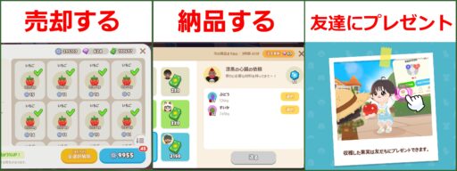 ![]() プレゼントチケット | 10,000 | 1 | 他の人に作物を贈るとき使用 |