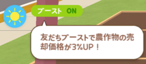 天候アイコンの右隣にある「ブースト」は、天候と関係ないです。友達が自分と同じホームタウンの農場にいればONになります。