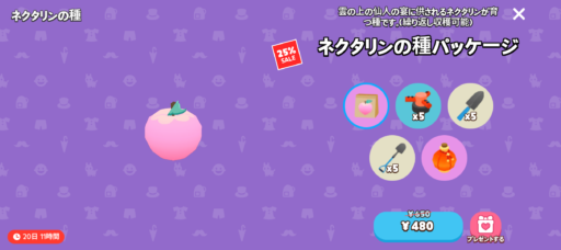 | 種ショップ | 5分 | 10宝石 | 2025年 11月 6日のアップデートから、宝石を使ってもすべての農作物が再入荷されなくなってしまいました。 → → ![]() |