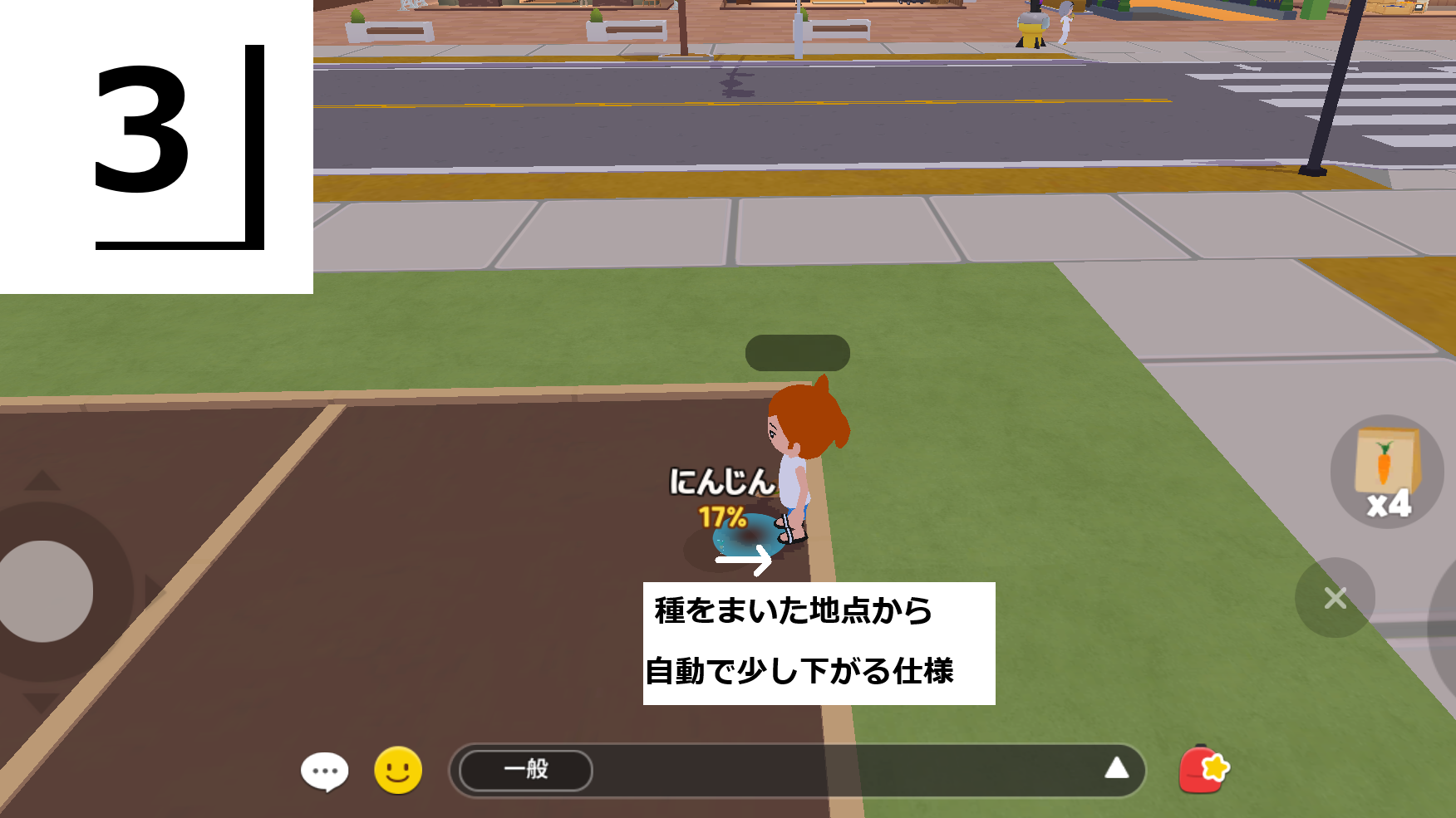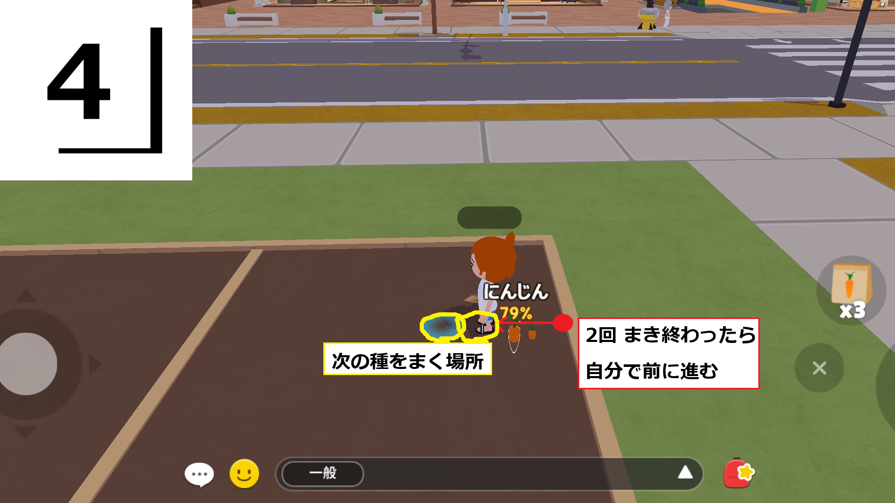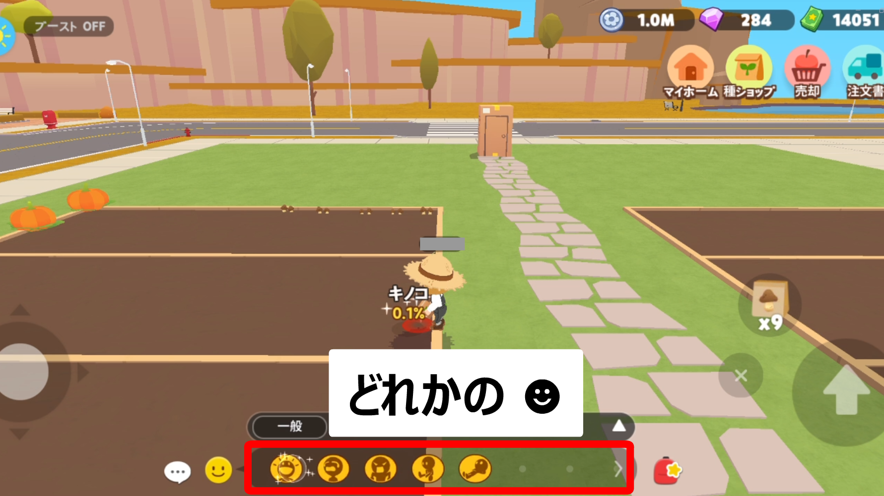 種をまいた直後にエモーション(☻)をタップすると、すぐに次の種をまけるようになります。
