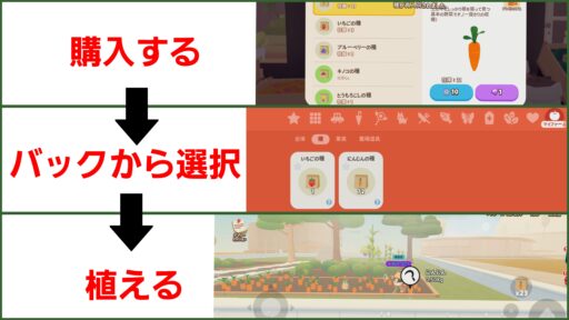 道具ショップで購入した道具を使って、作物の成長に影響を与えることができます。