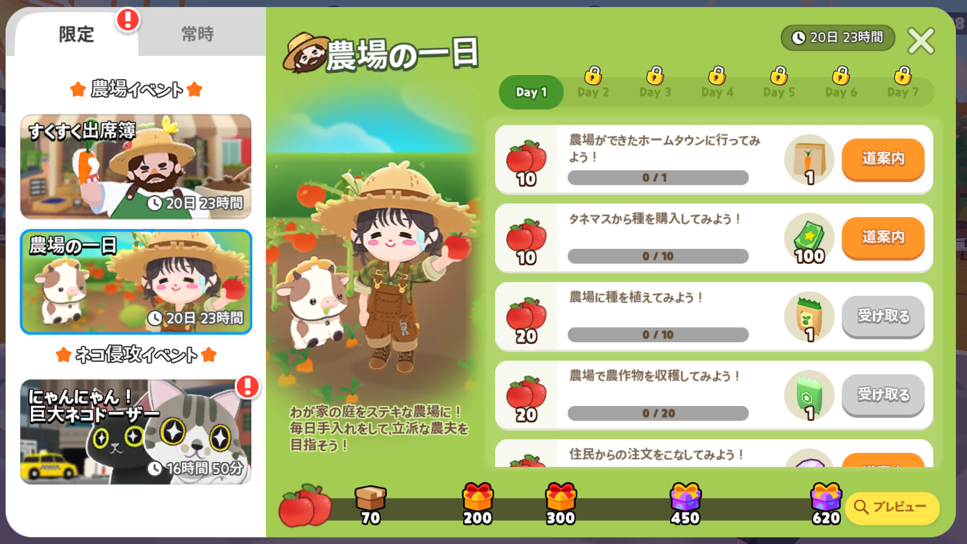 イベント「農場の一日」は、全部やる必要があります。