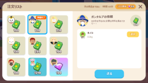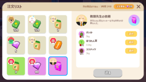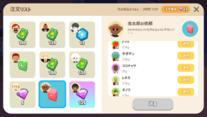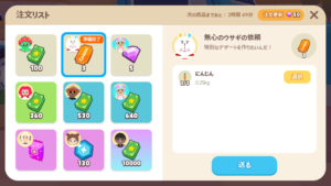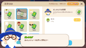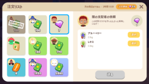 「ニンジン」、「いちご」、「ブルーベリー」は、収穫までの間隔が早いので納品しやすいです。以下の作物は、手間と運が必要です。