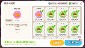 | バッグに保有できる収穫作物 | 150 |