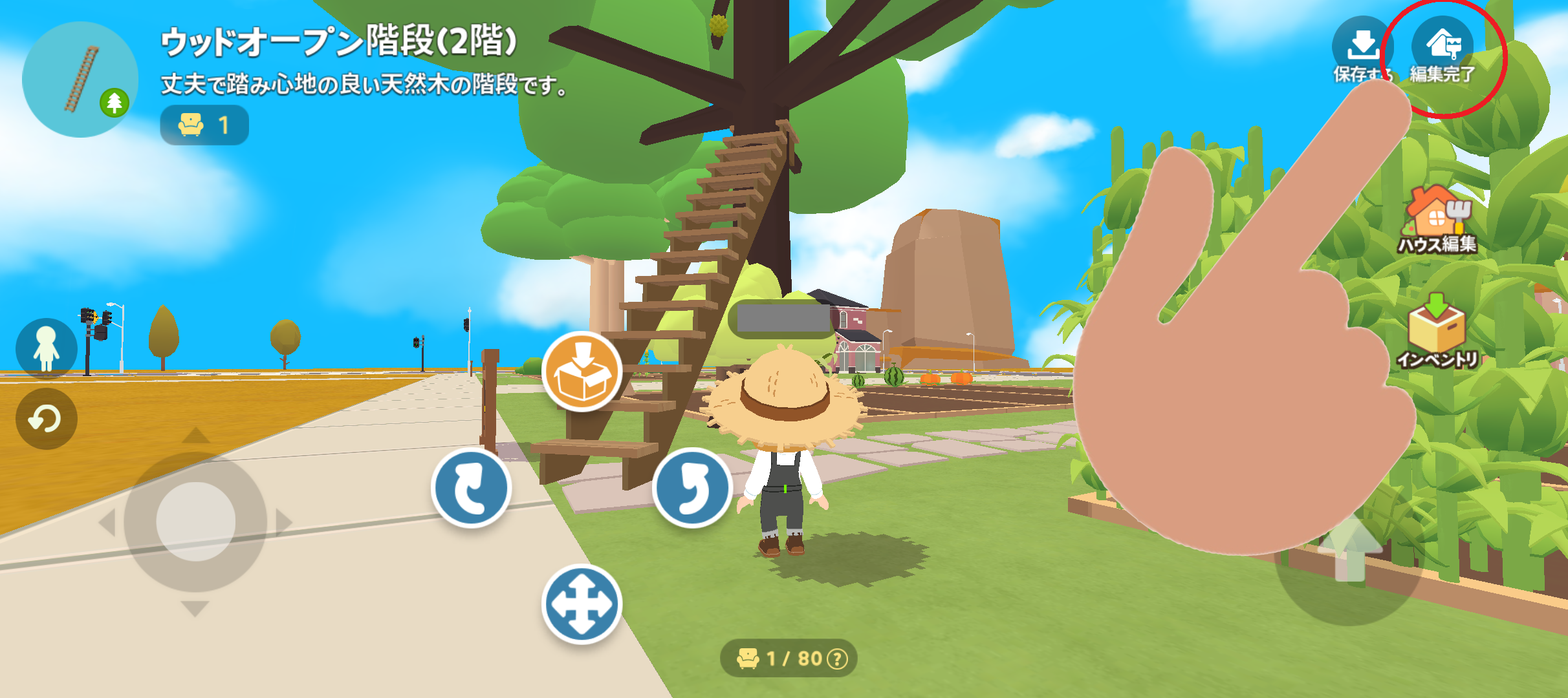 別のやり方として、農場家具ショップに売っている階段を設置する方法もあります。