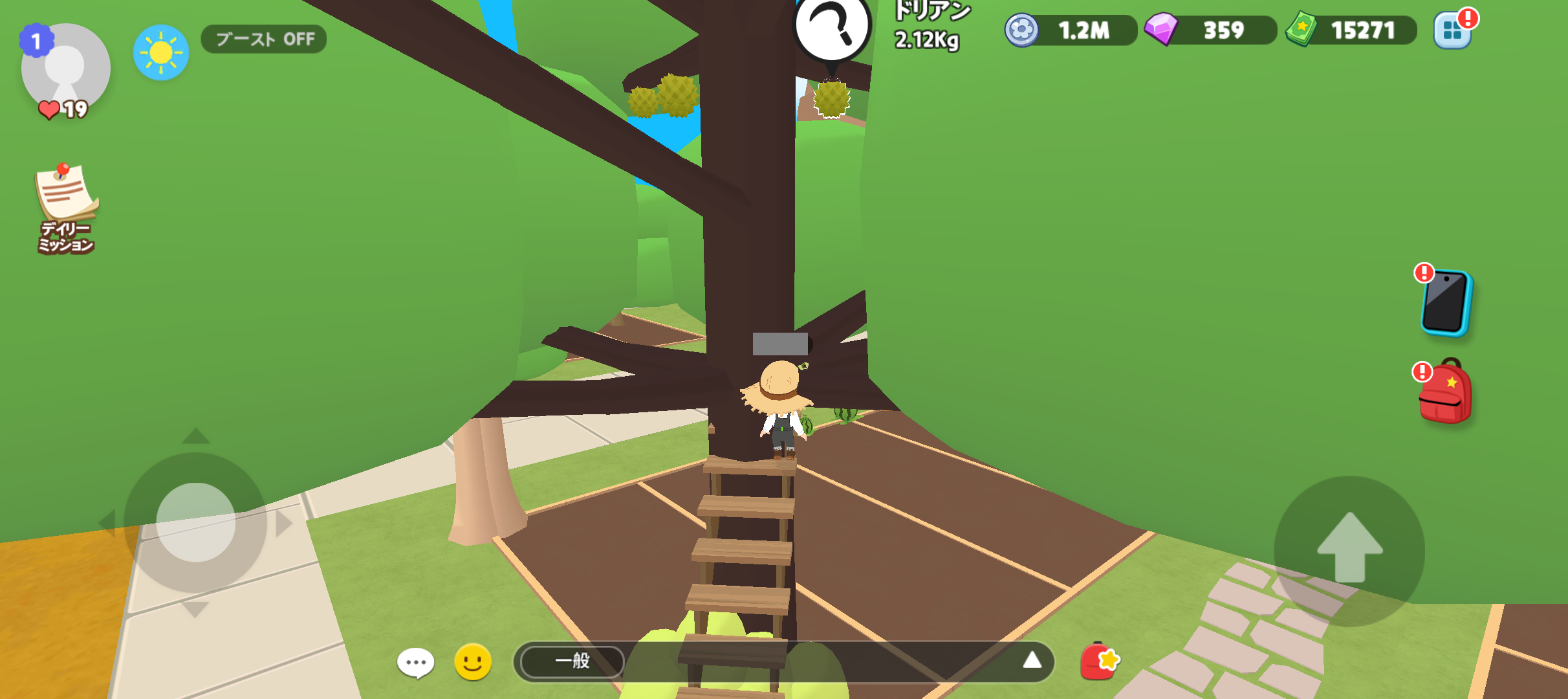 ココナッツやマンゴーの収穫は、空飛ぶ乗物やペットで収穫可能です。