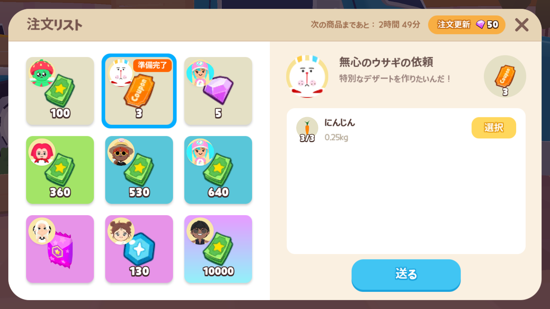![]() | にんじん | 10 | 1 | ー | 一度きり |