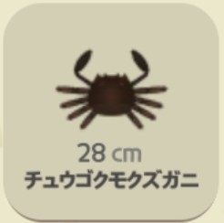 ![]() | ジャノメガザミ | 海辺の仕掛け網(広場)/ブルーホールの仕掛け網(広場)/海辺の仕掛け網(ビーチリゾート)/ブルーホールの仕掛け網(ビーチリゾート)/灯台の仕掛け網(広場) | 一日中 |