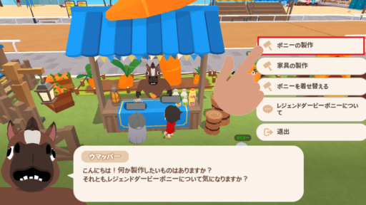 ウマッパー工房の一番上「ポニーの製作」メニューから製作できます。