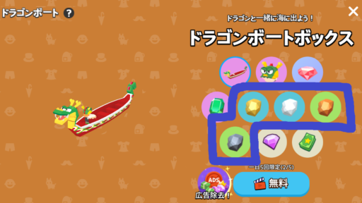 鉱石類は、ショップの無料ガチャ「ドラゴボートボックス」で入手できる可能性があります。