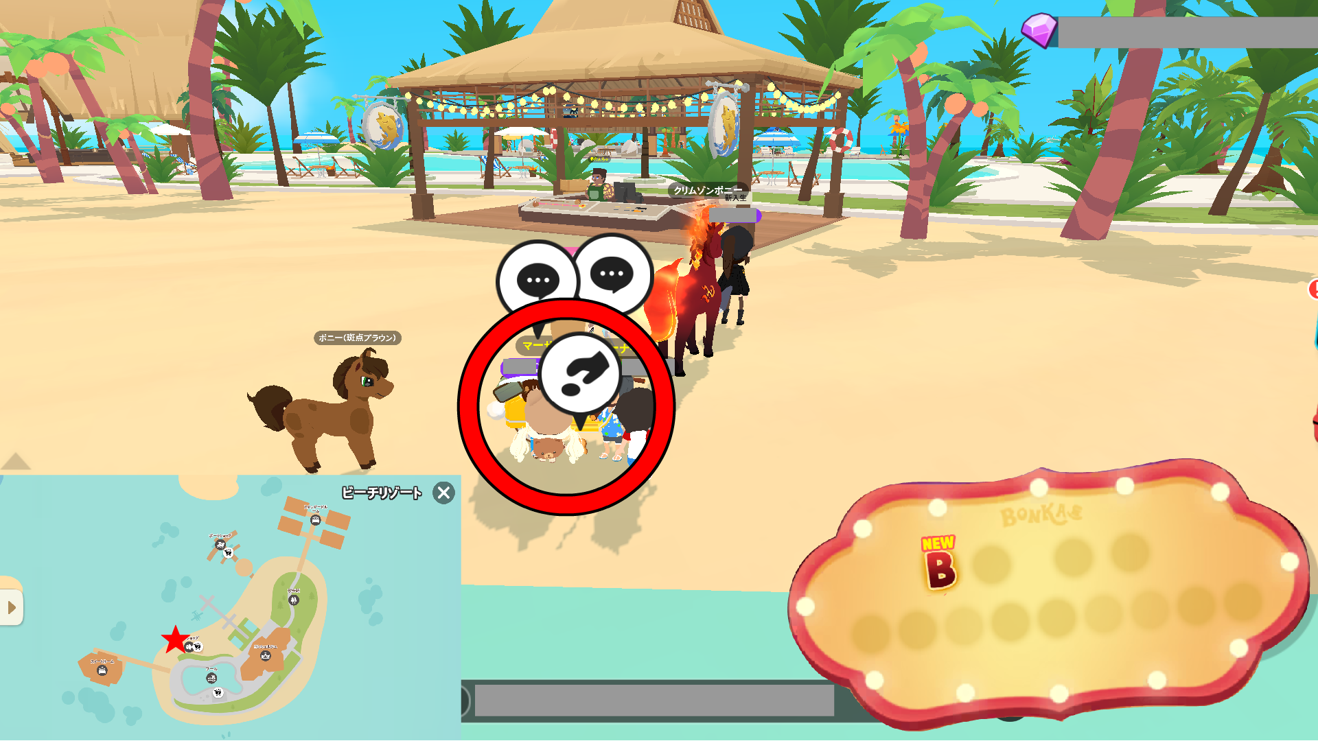 • ポニーと連れ歩いて欲求を叶え、育てる方法です。